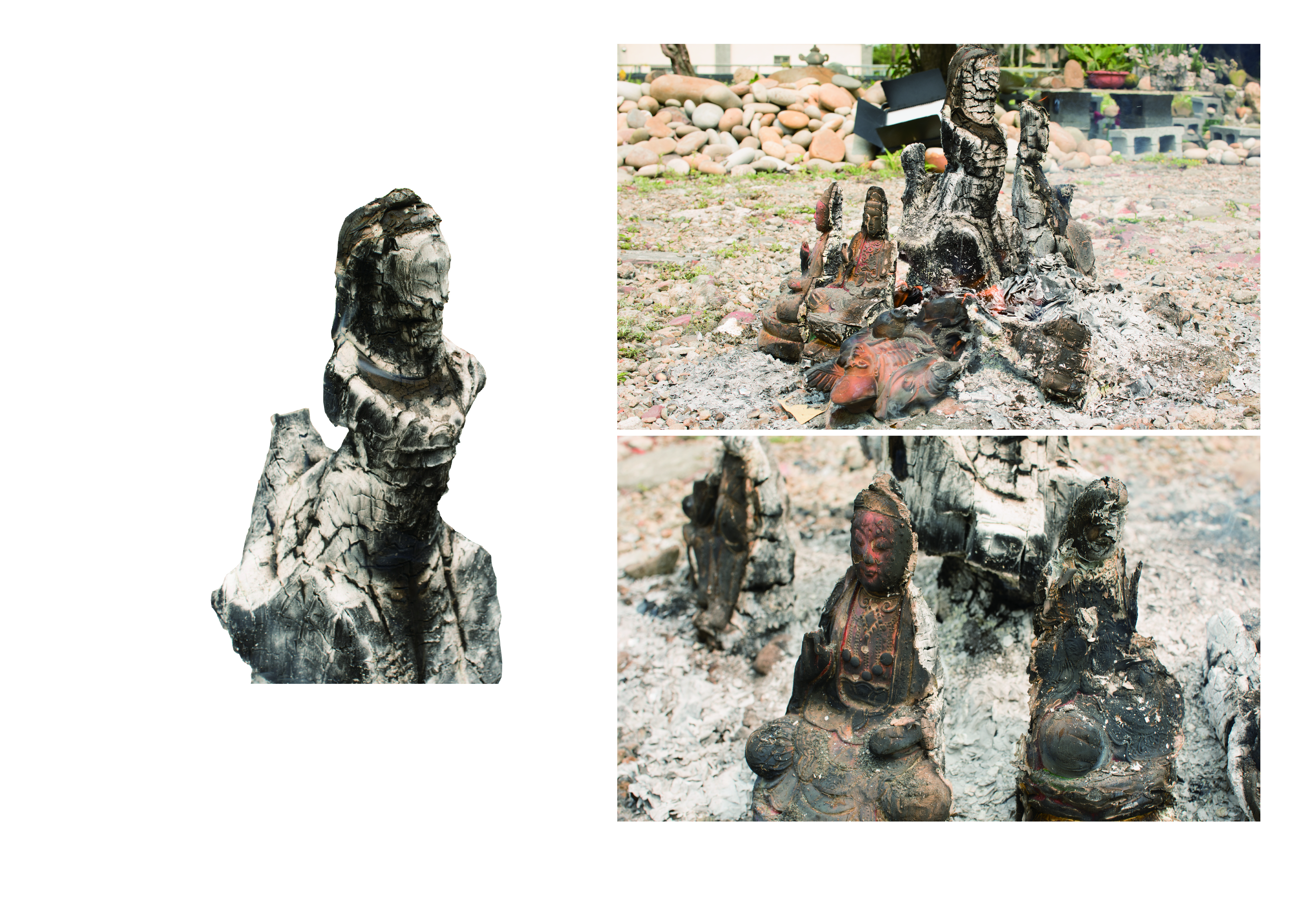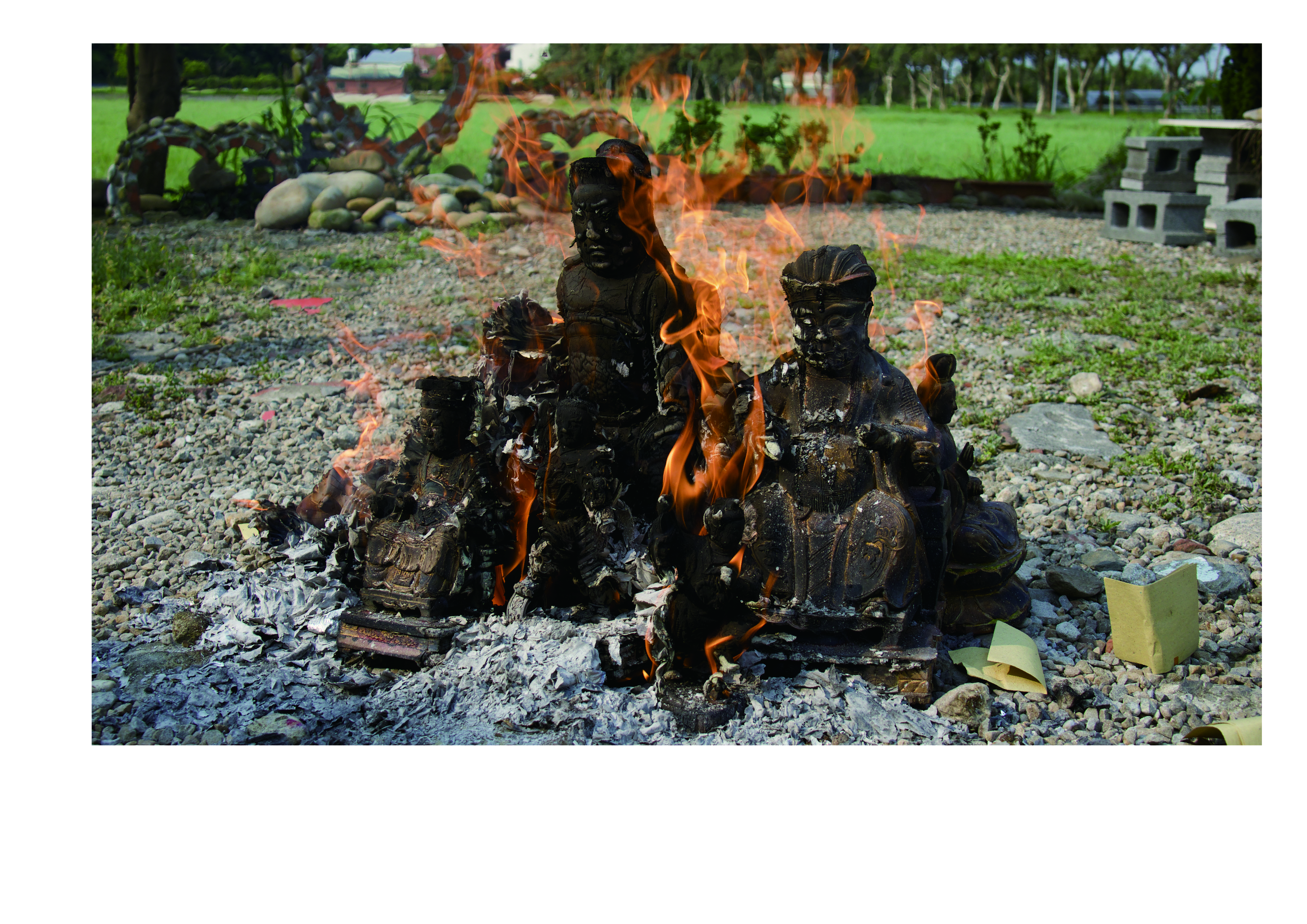 The project mainly bases on the research of cultural change in deity-statue making culture and industry in the Taoyuan area of Taiwan. Focusing on the spiritual transition in traditional ceremonies, we tried to use different digital technology to capture and transform the different statuses of the damaged statues in the cremation(burning) ceremony. Used these digital transitions to reshape previous acknowledge in the belief and digital attributes, ranging from production to reproduction, physical to spiritual, real to virtual.